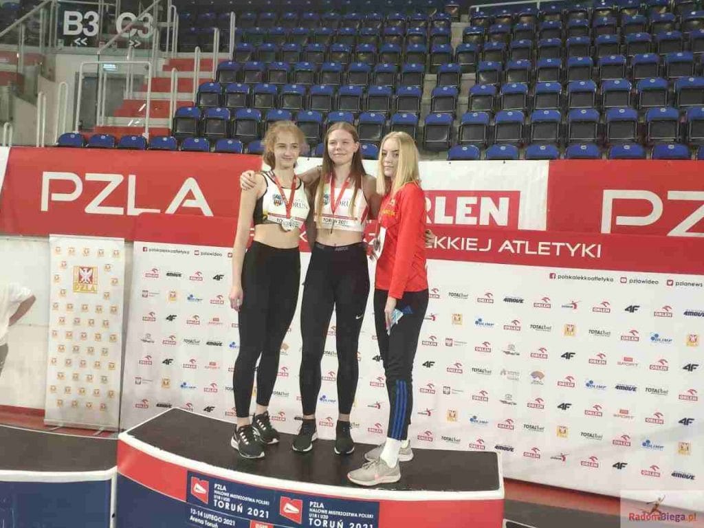 Dwa medale przywożą radomscy lekkoatleci z Halowych Mistrzostw Polski w lekkiej atletyce, które rozegrane zostały w dniach 12-14 lutego na Arenie Toruń. W trakcie 3 dniowych zmagań wystartowało ponad 1460 zawodników i uczestniczyło 258 klubów w rywalizacji sportowej w kategorii junior młodszy i junior. W pierwszym dniu zmagań Tomasz Gizicki broniący srebrnego medalu z roku ubiegłego na dystansie 60 m zajął 4 miejsce przegrywając 0,002 s brązowy medal. Wiktor Janduła i Adam Bajorski rywalizując na 2000 m poprawili rekordy życiowe, co pozwoliło im zając odpowiednio 7 i 12 miejsce. Kolejną startującą była Natalia Flisińska w finale konkurencji skoku wzwyż zajęła 8 miejsce. Kolejni nasi zawodnicy to Natalia Nowak – 8 miejsce na 300 m, Dorota Fałdrowicz – 12 miejsce na 1500 m, Kacper Jedynak – 11 miejsce na 60 m p.płotki, Nikola Brożyna 12 miejsce -60 m p.płotki, Gabriela Gołąbek – 5 miejsce w pchnięciu kulą. Na koniec trzeciego dnia rywalizacji Julia Adamczyk potwierdziła wysoką formę z ostatnich tygodni zajmując 2 miejsce w skoku w dal z wynikiem 5 metrów 66 cm. Godzinę później Mateusz Gos poprawiając życiówkę o 17 sekund na 3000 m zajął 2 miejsce z wynikiem 8 minut 30 sekund. Na zakończenie 3 dniowych zmagań Hubert Kolasiński w finale B na 60 m p.płotki zajął 5 miejsce ustanawiając rekord życiowy 8,63 s. Wszystkim serdecznie gratulujemy. Poniżej link do galerii z Mistrzostw Polski: https://photos.app.goo.gl/bMsCytzN5FMmLXW37